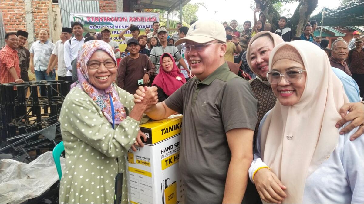“Jadi secara total untuk alsintan ada 1118 unit yang terdiri dari 12 item di antaranya seperti Hand Tractor, Multivator, Hand Sprayer, Mesin Potong Rumput, kemudian termasuk beberapa sepatu bot petani, dodos sawit juga,” kata M. Rizon.