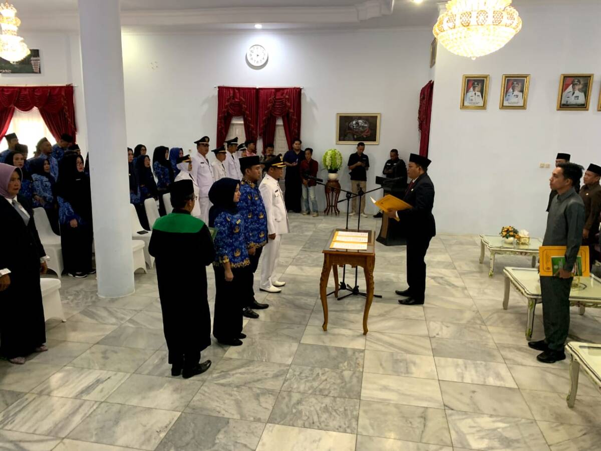 Pelantikan, pengukuhan dan pengambilan sumpah/janji jabatan Pegawai Negeri Sipil dalam jabatan admistrasi dan jabatan fungsional dipimpin langsung oleh Erwin Octavian, di Gedung Daerah Serasan Seijoan.