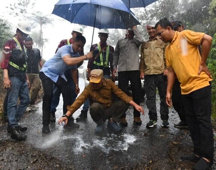 Rejang Lebong, mediabengkulu.co – Dengan diguyur hujan deras, Bupati Rejang Lebong, Syamsul Effendi, menandai titik nol pembangunan Jalan Curup Utara – Bermani Ulu, Jumat (14/6/2024).