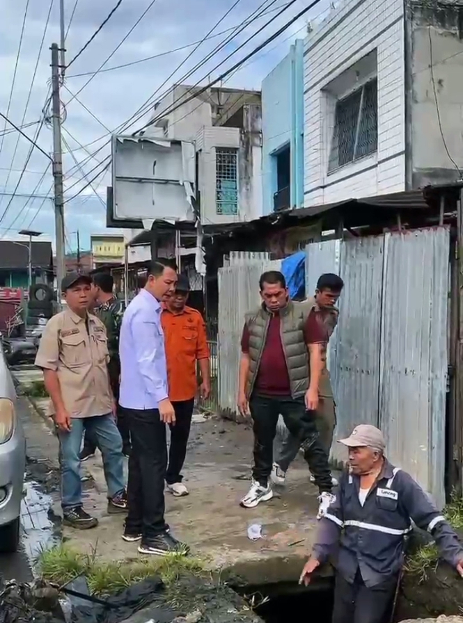 Bupati Rejang Lebong, M. Fikri memantau langsung kegiatan pembersihan saluran drainase di Kelurahan Jalan Baru Curup, Rabu (12/3/2025)
