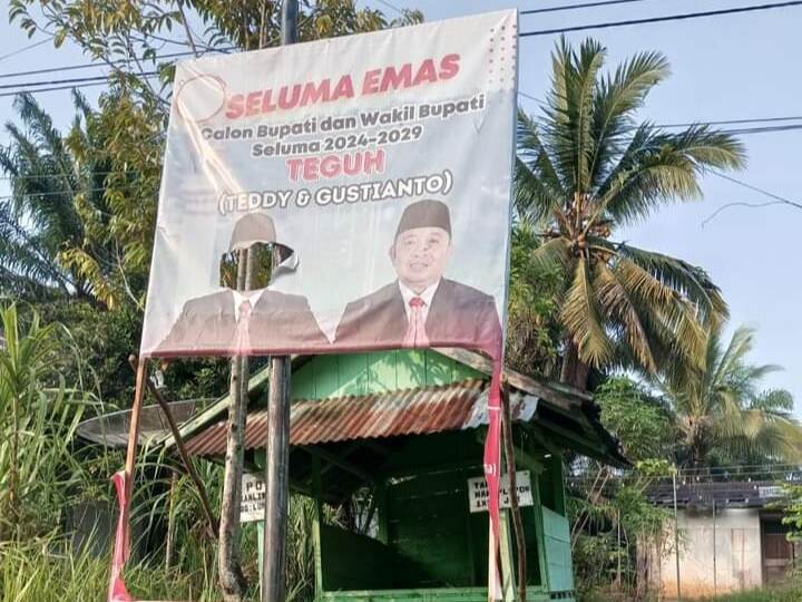 Seluma, mediabengkulu.co – Bukan hanya baliho milik Paslon Erwin – Jonaidi yang dirusak, tapi juga milik pasangan Teddy Rahman – Gustianto turut ikut dirusak oleh orang tidak bertanggungjawab.