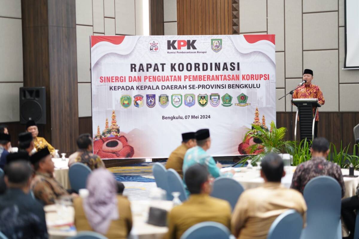 Hal tersebut ditegaskan Gubernur Bengkulu, Rohidin Mersyah, usai membuka Rapat Koordinasi Sinergi dan Penguatan Pemberantasan Korupsi kepada Kepala Daerah se-Provinsi Bengkulu. Di ballroom salah satu hotel di Kawasan Padang Jati Kota Bengkulu, Selasa (7/5/2024).