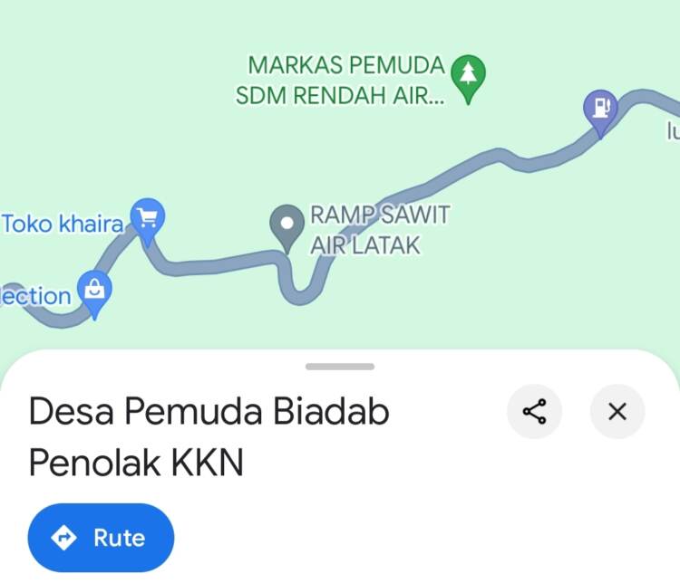 Ada yang terlulis Desa Air Latak, dan satunya lagi tertulis desa pemuda biadab penolakan KKN, dua pilihan tersebut menunjukan lokasi titik koordinat yang sama.