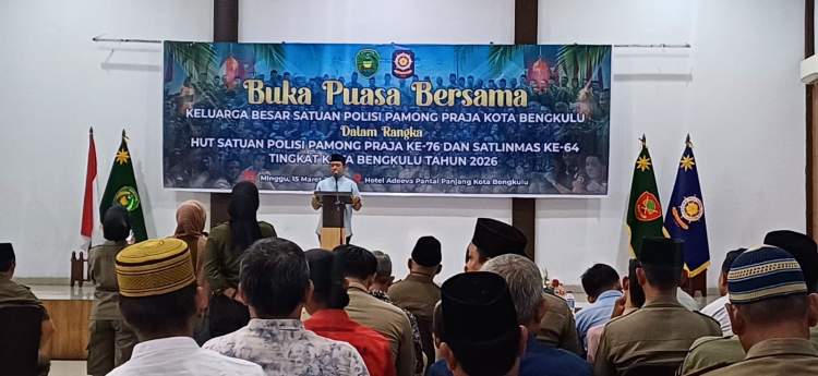 Kota Bengkulu, mediabengkulu.id – Pemerintah Kota Bengkulu menggelar buka puasa bersama keluarga besar Satuan Polisi Pamong Praja (Satpol PP) dan Satuan Perlindungan Masyarakat (Satlinmas).