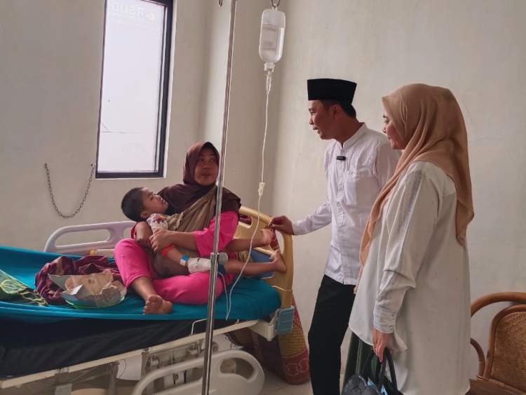 Bupati dan Ketua TP PKK, mengunjungi Fikri Al Bukhori, bocah berusia 6 tahun yang dirawat akibat dugaan cacingan, riwayat stunting, dan cerebral palsy (CP).