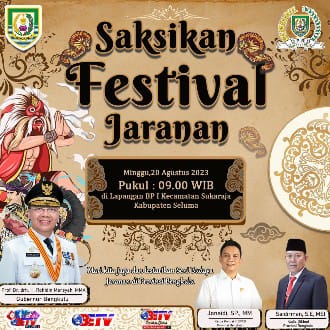 Sementara Anggota DPRD Provinsi Bengkulu Jonaidi SP, MM menyampaikan, pagelaran seni budaya festival jaranan di Seluma akan di laksanakan pada 20 Agustus 2023 bertempat di lapangan bola PP1 Bukit Barisan Kecamatan Sukaraja.