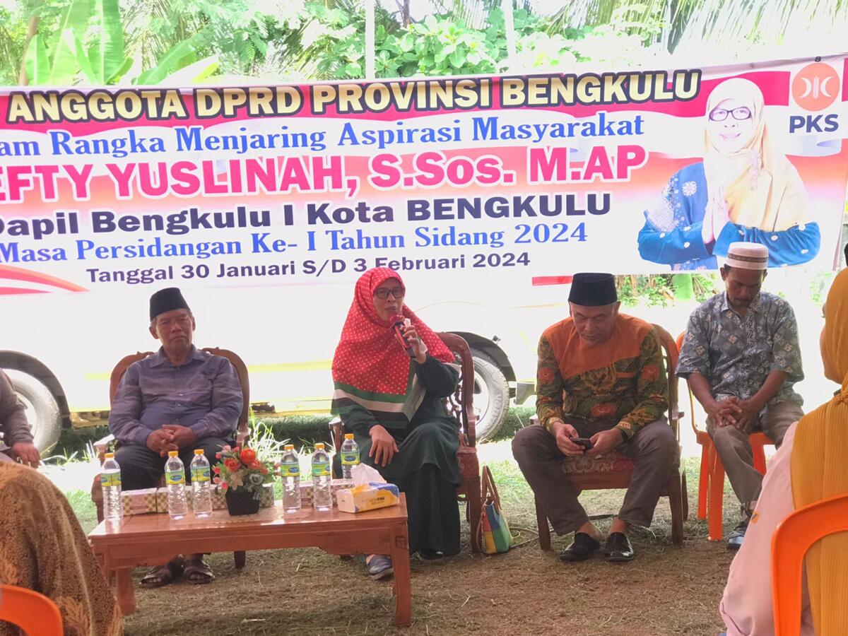 Bengkulu, mediabengkulu.co – Anggota DPRD Provinsi Bengkulu Sefty Yuslinah, S.Sos. M.AP Dapil Bengkulu I menggelar reses di kantor DPD PKS Bengkulu dalam rangka menjaring aspirasi masyarakat, Rabu (31/1/2024).