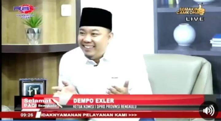 Ketua Komisi I DPRD Provinsi Bengkulu, Dempo Exler, ikut serta dalam acara podcast talkshow dengan tema Partisipasi Pemilih Pemula Dalam Kontestasi Pemilu 2024 di studio live RBTV, Senin (12/02/2024). (foto : Istimewa)