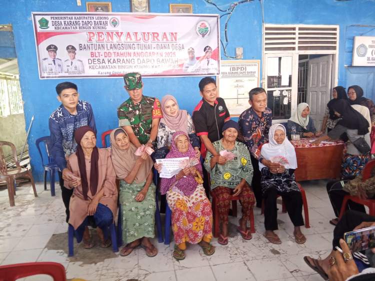 Pj Kepala Desa Karang Dapo Bawah, Saharudin, menjelaskan bahwa pada tahun 2025, sebanyak 30 Keluarga Penerima Manfaat menerima bantuan tunai sebesar Rp300.000 per bulan.