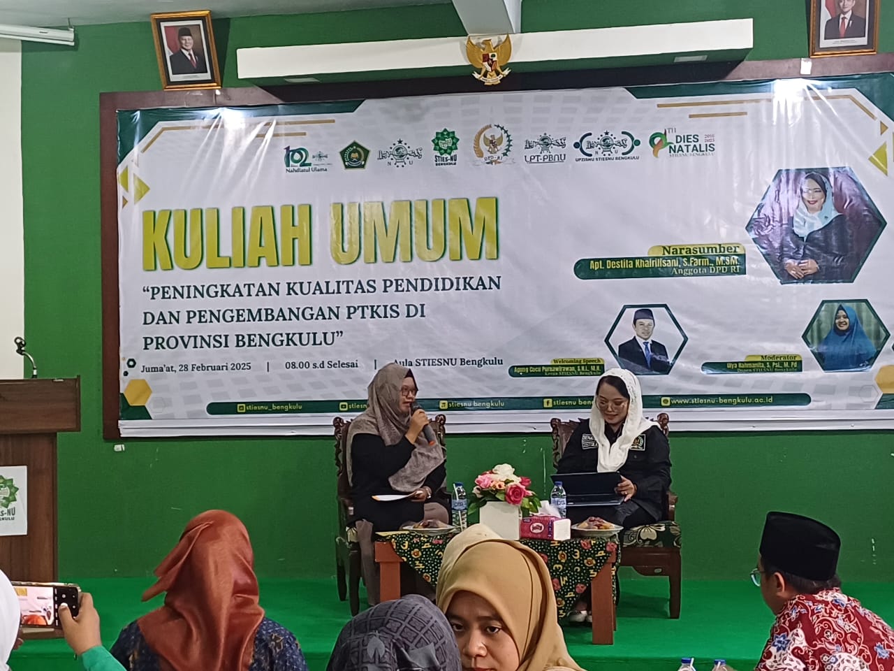 Anggota DPD RI Dapil Bengkulu, Apt. Destita Khairilisani, menyatakan dukungannya terhadap rencana Sekolah Tinggi Ilmu Ekonomi Syariah Nahdlatul Ulama (STIESNU) Bengkulu untuk bertransformasi menjadi institut. (foto:dok/yola)