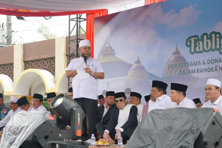 Acara tersebut berlangsung di Halaman Masjid Raya Baitul Izzah, Senin (8/12/2025), dengan menghadirkan H. Rhoma Irama sebagai penceramah utama.