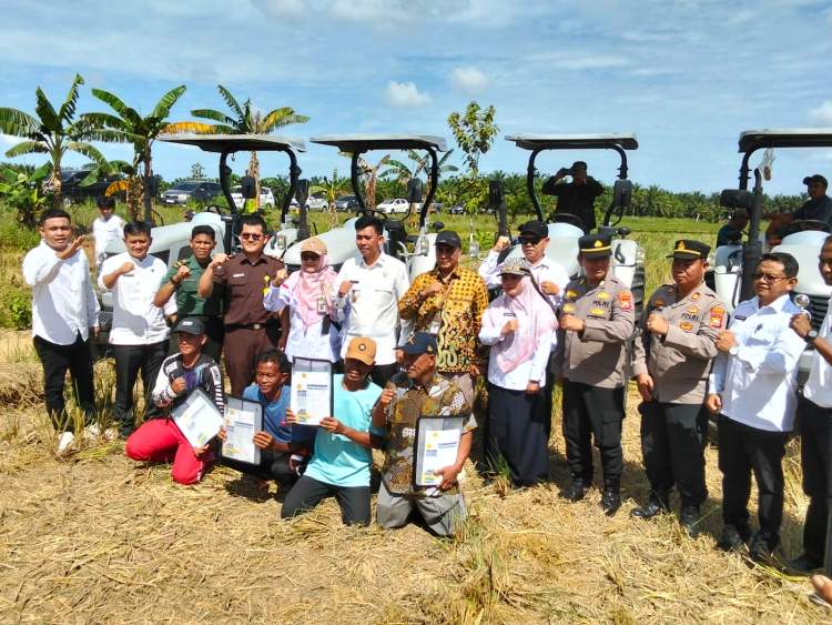 Salah satunya melalui penyerahan bantuan alat mesin pertanian (alsintan) berupa traktor roda empat kepada petani di Desa Arah Tiga, Kecamatan Lubuk Pinang, Rabu (25/6/2025).