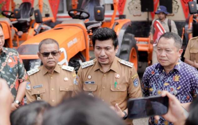 Bupati Bngkulu Utara, Arie Septia Adinata, secara simbolis menyerahkan bantuan empat unit traktor roda empat kepada Balai Penyuluh Pertanian di halaman Kantor Pemkab Bengkulu Utara, Senin (23/6/2025).