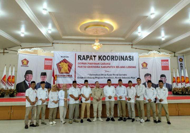 Rejang Lebong, mediabengkulu.co – DPC Partai Gerindra Rejang Lebong menggelar rapat koordinasi, dengan tema “Optimalisasi Peran Kader Partai Gerindra dalam Mendukung Program Pemerintah Menuju Indonesia Maju” di Aula Kuala Triva Resto, Minggu (9/11/2025).