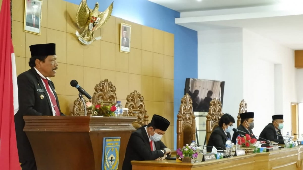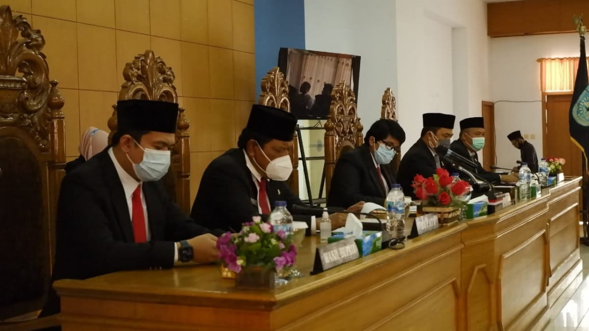 KOTA ARGA MAKMUR,– Dewan Perwakilan Rakyat Daerah (DPRD) Kabupaten Bengkulu Utara menggelar rapat paripurna Pengumuman Usulan Pemberhentian Bupati dan Wakil Bupati Bengkulu Utara Masa Jabatan 2016-2021 dan Pengumuman Usulan Pengangkatan Bupati dan Wakil Bupati Bengkulu Utara masa Jabatan 2021-2024, Rabu (27/1/2021) pagi di Gedung Paripurna DPRD BU.