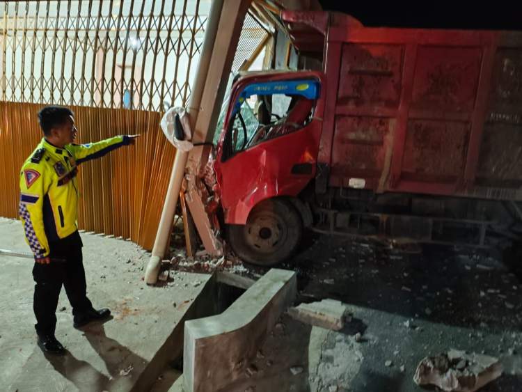 Dump Truck Lepas Kendali, Garasi Rumah Warga Ludes