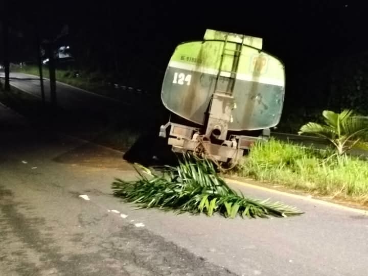 Seluma, mediabengkulu.co – Sebuah truk tangki bermuatan crude palm oil atau CPO bernomor polisi BE 9793 CU yang dikemudikan oleh Dani (35), warga Bandar Lampung terperosok ke median jalan dan nyaris terguling.