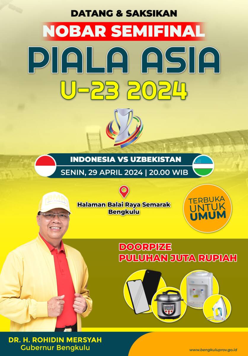 Gubernur Ajak Masyarakat Nobar Semifinal Piala Asia U-23, di Balai Raya Semarak Bengkulu