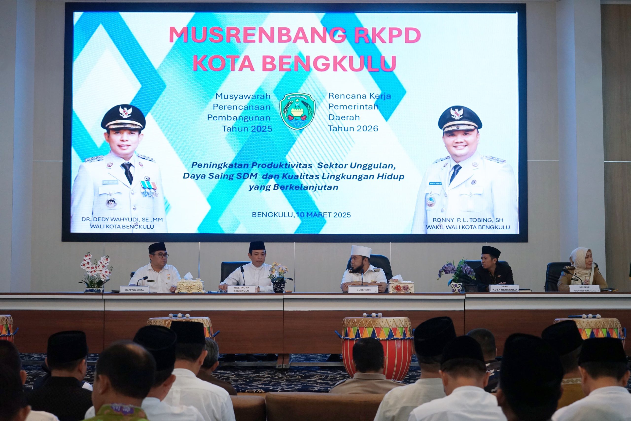 Bengkulu, mediabengkulu.co – Gubernur Bengkulu, Helmi Hasan, menghadiri Musyawarah Rencana Pembangunan Rencana Kerja Pemerintah Daerah Kota Bengkulu, yang digelar di Ruang Hidayah 1, Kantor Wali Kota Bengkulu, Senin (10/3/2025).