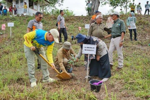 Bengkulu, mediabengkulu.co – Jelang tutup tahun 2023, Gubernur Bengkulu Rohidin Mersyah bersama Staf Ahli Kementerian Lingkungan Hidup dan Kehutanan, Forkopimda, ASN, pihak Akademisi serta pemerhati dan pecinta lingkungan tanam ratusan pohon buah dan kayu di kawasan Taman Hutan Raya Rojo Lelo, Sabtu (30/12/2023) kemaren.