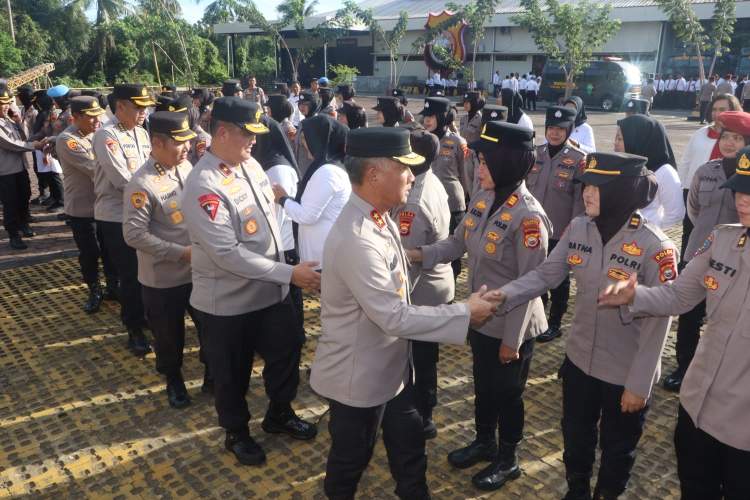 Usai apel, Kapolda Bengkulu didampingi para pejabat utama Polda memberikan ucapan selamat secara langsung kepada para Polwan.