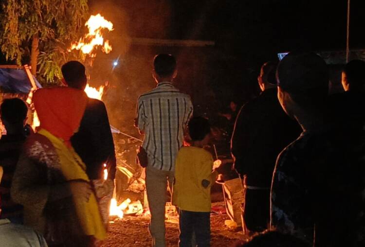 Tiba-tiba lapak milik Sriyani pedagang sosis goreng yang hanya berjarak beberapa meter dari bupati, terbakar. Kamis (15/8) sekitar pukul 21.15 WIB.