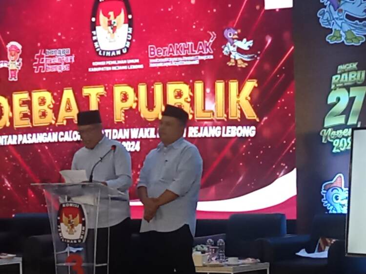 Pemaparan visi misi atau program kerja untuk mewujudkan pembangunan berkelanjutan di Rejang Lebong, disampaikan Paslon ini dalam acara debat publik yang diselenggarakan oleh Komisi Pemilihan Umum Rejang Lebong, di Grage Hotel Bengkulu, Minggu (10/11/2024).
