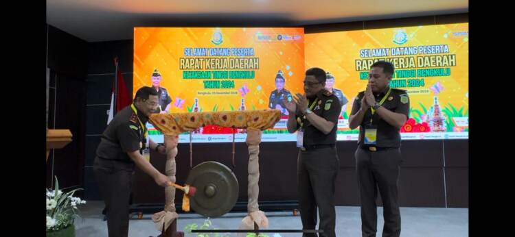 Bengkulu, mediabengkulu.co – Kepala Kejaksaan Tinggi Bengkulu, Syaifudin Tagamal, membuka acara Rapat Kerja Daerah Wilayah Kejaksaan Tinggi Bengkulu tahun 2024, di Aula Sasana Bina Karya Kejati Bengkulu, Kamis (5/12/2024).