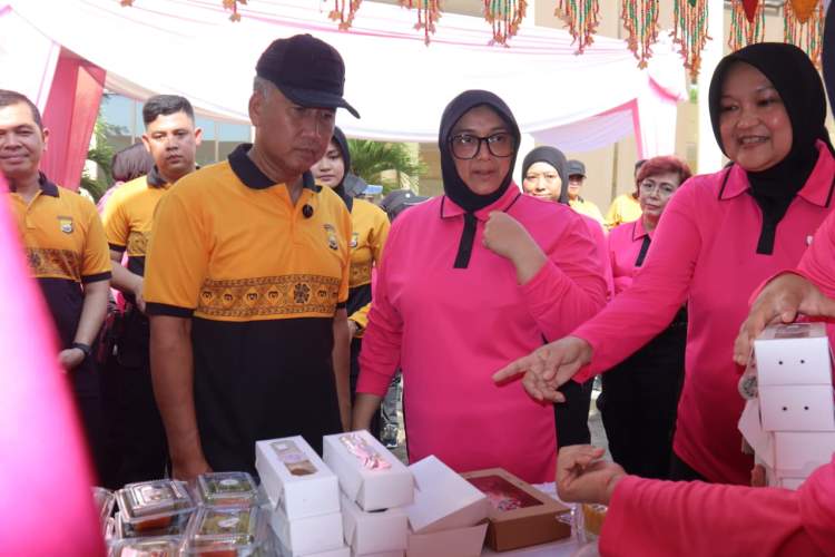 Usai senam, Kapolda langsung meninjau bazar. Beragam produk lokal dipamerkan, mulai dari kuliner hingga kerajinan tangan.