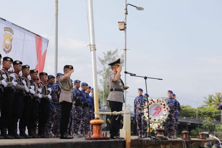 Bengkulu, mediabengkulu.co – Kapolda Bengkulu Irjen Pol Mardiyono, memimpin upacara tabur bunga di Dermaga Ditpolairud Polda Bengkulu, Senin (23/6/2025).