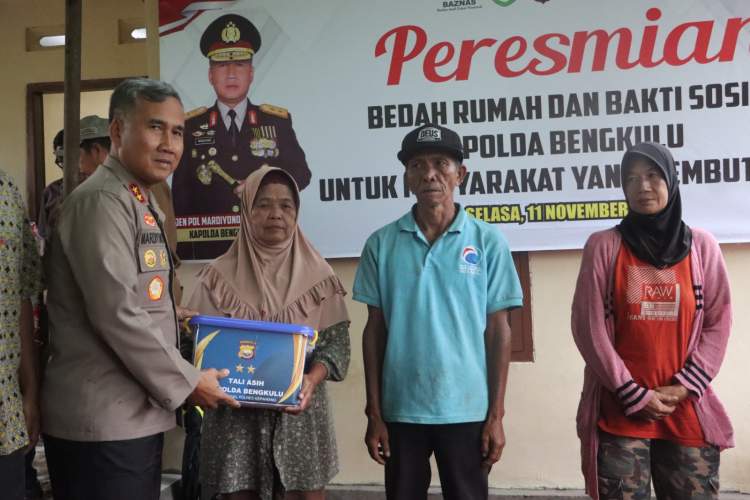 Selain peresmian rumah, kegiatan juga diisi dengan pembagian paket sembako kepada warga sekitar, sebagai bagian dari rangkaian bakti sosial Polda Bengkulu. (**)