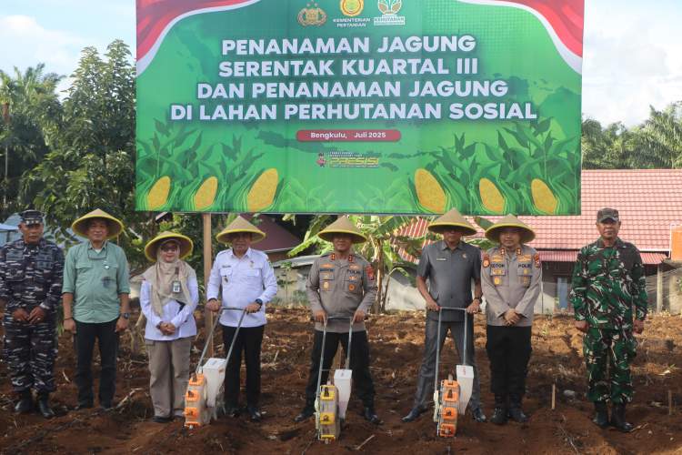 Bengkulu Tengah, mediabengkulu.co – Kapolda Bengkulu, Irjen Pol Mardiyono, memimpin kegiatan Penanaman Jagung Serentak Kuartal III Tahun 2025 di lahan binaan Polsek Pondok Kelapa, Desa Pekik Nyaring, Kecamatan Pondok Kelapa, Kabupaten Bengkulu Tengah, Rabu (9/7/2025).