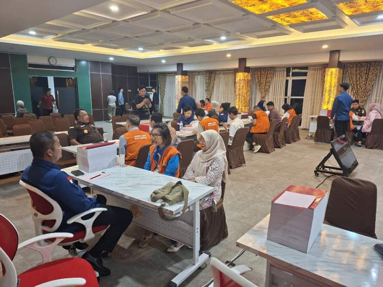 Pelimpahan berlangsung di Aula Kejati Bengkulu, dengan para tersangka mengenakan rompi oranye dan didampingi kuasa hukum.