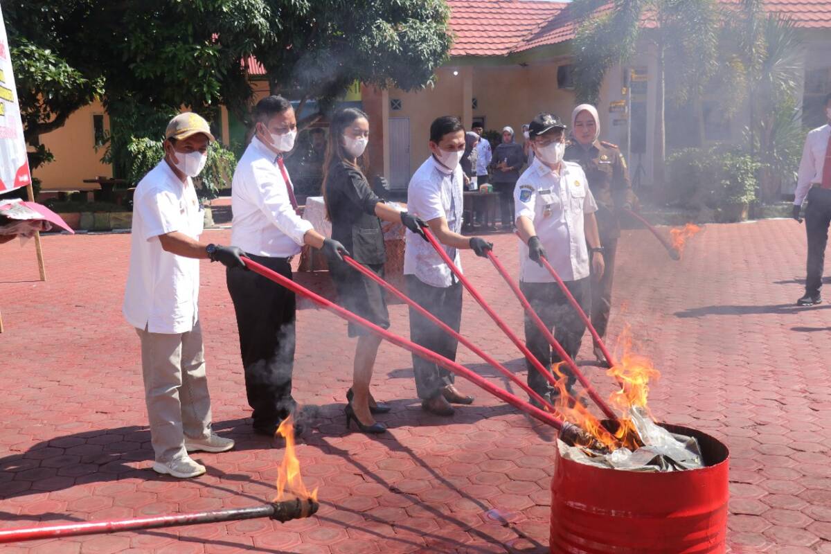 Adapun barang bukti yang dimusnahkan yakni narkotika, handphone, tojok/egrek, pakaian dan obat-obatan.