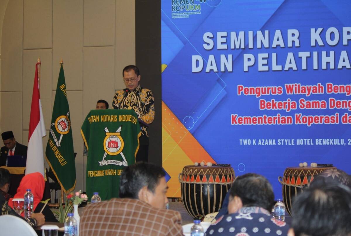 Bengkulu, mediabengkulu.co – Kepala Kantor Wilayah Kementerian Hukum dan HAM Bengkulu, Santosa, secara resmi membuka kegiatan Seminar dan Pelatihan Notaris Pembuat Akta Koperasi yang diselenggarakan oleh Pengurus Wilayah Ikatan Notaris Indonesia Bengkulu.
