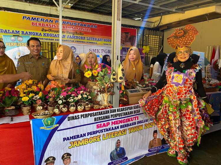 Gubernur Bengkulu, Rohidin Mersyah, memberikan apresiasi atas hasil kerajinan tangan yang menarik dan inovatif, serta dapat memahami makna dari acara jambore literasi ini. (Helen)