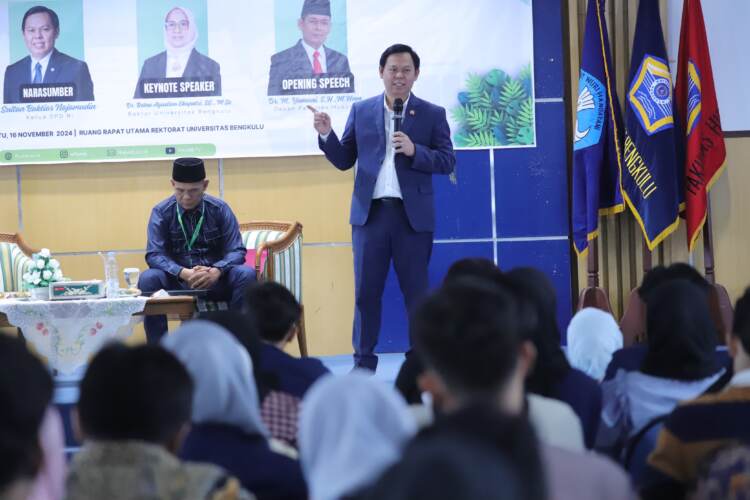 Bengkulu, mediabengkulu.co – Ketua Dewan Perwakilan Daerah RI, Sultan B. Najamudin, menyampaikan kuliah umum bertema green democracy kepada ratusan mahasiswa Universitas Bengkulu, Sabtu (16/11/2024).