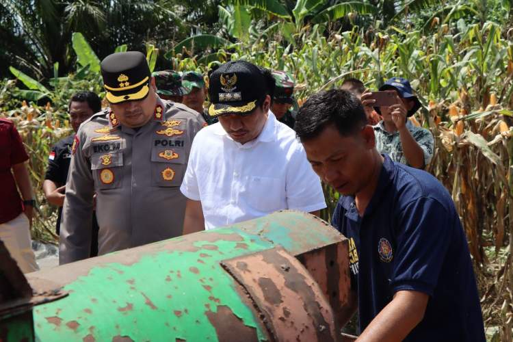 Kapolres Bengkulu Utara, AKBP Eko Munarianto, bersama Bupati Arie Septia Adinata, Dandim 0423/BU Letkol Inf. Aidil Hajri, serta unsur Forkopimda lainnya, melaksanakan panen jagung serentak Kuartal II di Desa Tanjung Agung Palik, Kamis (5/6/2025).
