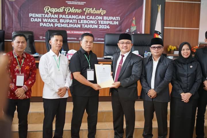Ketua KPU Lebong, Yoki Setiawan, mengatakan penetapan pasangan calon terpilih ini merupakan tindak lanjut setelah pihaknya menerima buku registrasi perkara konstitusi atau BRPK, yang diterbitkan oleh Mahkamah Konstitusi.