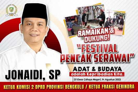 Sementara Anggota DPRD Provinsi Jonaidi SP,MM menyampaikan, dalam kesempatan ini mengundang masyarakat khususnya warga seluma untuk menyaksikan sebuah momen pagelaran besar, festival pencak serawai.