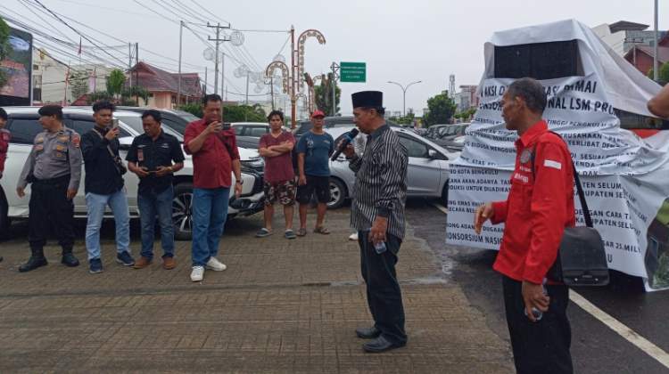 Konsorsium Nasional LSM Provinsi Bengkulu menggelar aksi damai di depan Kantor Kejaksaan Tinggi Bengkulu, Rabu (26/11/2025). (Foto: ist)