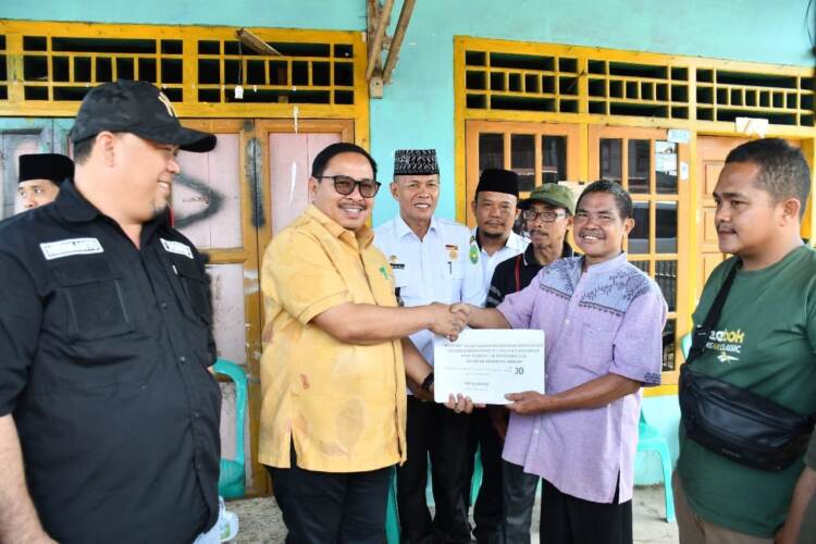 Arif Gunadi menyerahkan langsung bantuan dari program peduli dan berbagai sesama Kecamatan Singaran Pati berupa uang tunai sebesar Rp 16 Juta kepada korban kebakaran.