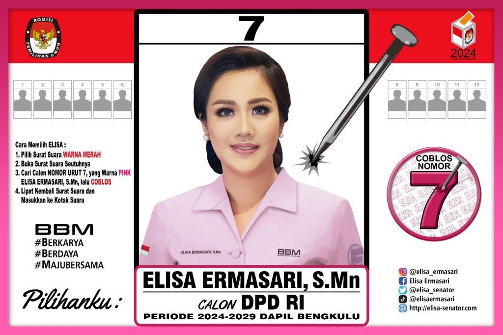 Elisa Ermasari tokoh perempuan Bengkulu sekaligus Pengusaha Muda mendapatkan dukungan dari berbagai lapisan masyarakat untuk maju sebagai calon Anggota DPD RI 2024-2029.