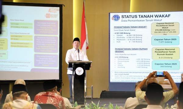 “Kita ingin memastikan tanah wakaf di seluruh Indonesia memiliki sertipikat sehingga aman dari sengketa dan bisa dimanfaatkan sesuai peruntukannya,” tutur Menteri Nusron.
