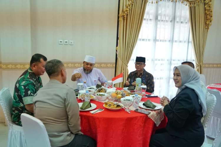 Setelah mendarat, Menteri Yandri, langsung disuguhi hidangan khas kampung halamannya: nasi ibat dengan gulai mungkus, masakan tradisional asal Kedurang, Bengkulu Selatan.