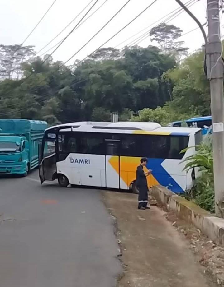 Mesin Mati saat Nanjak, Bus Damri Lebong-Bengkulu Alami Lakalantas