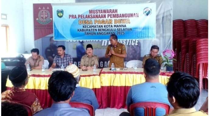 Bengkulu Selatan, mediabengkulu.co – Pemerintah Desa Pagar Dewa, Kecamatan Kota Manna, Kabupaten Bengkulu Selatan, menggelar Musyawarah Pra Pelaksanaan Kegiatan Pembangunan Tahun Anggaran 2025, Selasa (8/7/2025).
