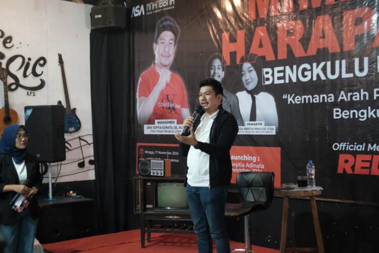 Pada Minggu (17/11) malam, Bang Arie sapaan akrabnya, menyapa sekaligus berdiskusi semi talk show dengan perkumpulan bersama pemuda di Kafe Four Star, Arga Makmur.