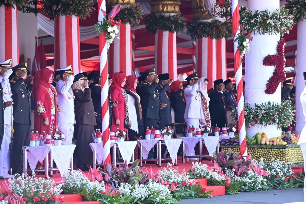 Upacara peringatan Hari Kemerdekaan ke-78 itu turut dihadiri oleh pejabat Forkopimda Jatim, dan pasukan upacara diantaranya terdiri dari unsur TNI, Polri, PNS hingga elemen masyarakat dan mahasiswa hingga pelajar.