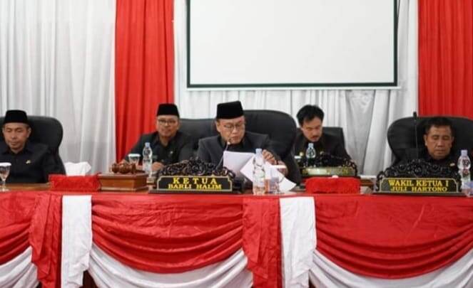 Rapat paripurna dipimpin langsung oleh Ketua DPRD Barli Halim, didampingi Wakil Ketua I Juli Hartono serta diikuti anggota dari semua unsur fraksi.